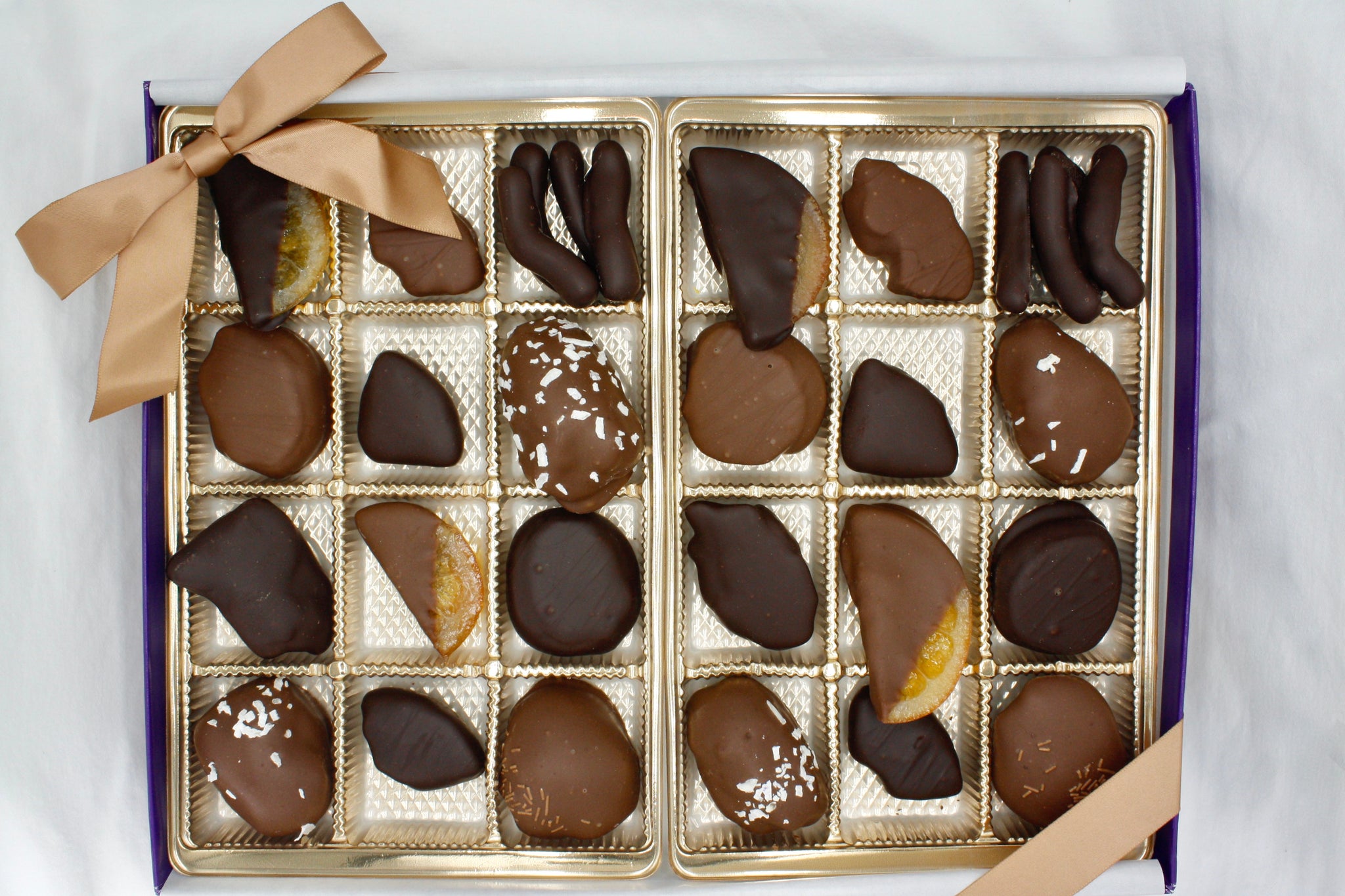 Our chocolate covered fruits have an exotic taste that is sure to fascinate the more adventurous chocolate lover. Glazed oranges, lemons, apricots, pineapples, and orange peels are dipped in smooth Swiss chocolate for a sweet treat.